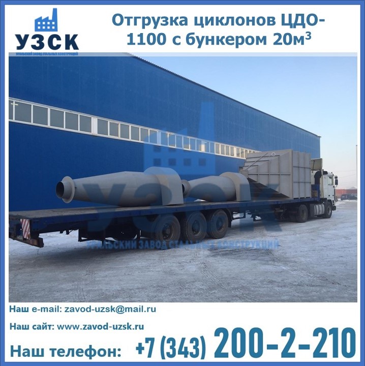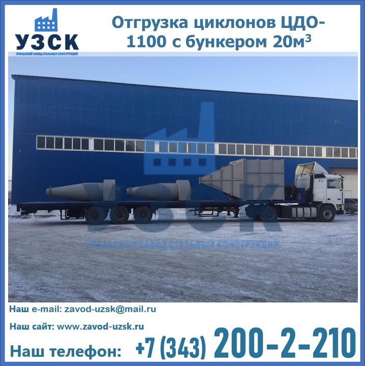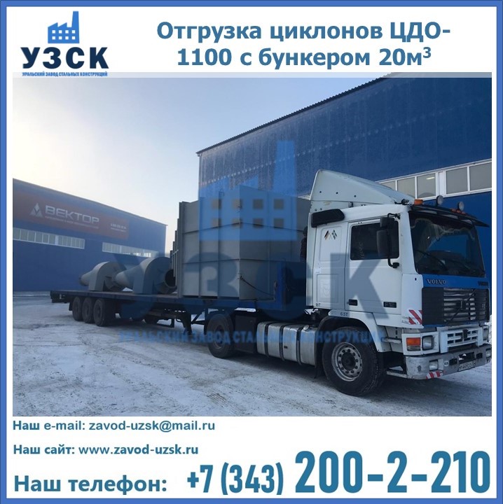 Циклоны ЦДО-1100 с бункером на 20 кубов были отгружены в декабре 2018 года в г. Новосибирск Кемерово.