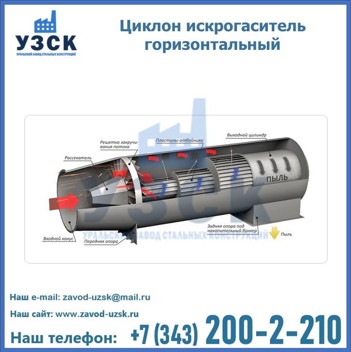 Горизонтальные циклоны-искрогасители ЦГ поставляются в Кемерово в сборке или же транспортными единицами для последующей сборки, если предназначены для работы с большими объемами.