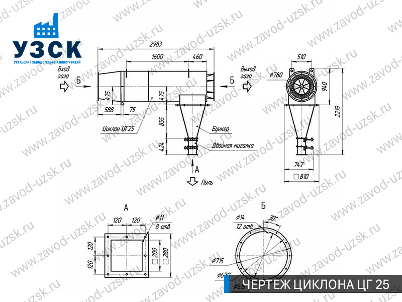 Монтаж циклона-искрогасителя ЦГ должен осуществляться непосредственно к горизонтальному вентиляционному каналу на входе в систему фильтрации и аспирации. Заказать изготовление по индивидуальному техзаданию или купить готовый циклон-искрогаситель ЦГ на заводе УЗСК в Кемерово можно, оставив заявку прямо на сайте или позвонив по указанному телефону, уточнив все детали касательно продажи оборудования.