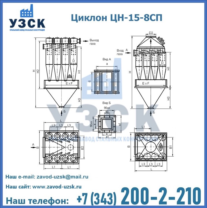 Завод «УЗСК» в Кемерово предлагает большой выбор циклонов ЦН-15-500×8СП и прочих устройств, полностью укомплектованных и готовых к эксплуатации. Мы гарантируем соответствие оборудования всем требованиям ГОСТ и ТУ, износостойкость и высокую производительность предлагаемого оборудования. Уральский Завод Стальных Конструкций изготавливает и продает надежное, эффективное и производительное оборудование, имеющее длительную гарантию и большой эксплуатационный ресурс. Если требуется изготовить циклон нестандартных размеров, то такой вариант выполнения заказа тоже предусмотрен, так как предприятие имеет собственные производственные площади и надежных поставщиков. На все поставляемое или производимое оборудование имеются чертежи и прочая техническая документация. Заказать и купить циклоны или прочее оборудование высокого качества и по доступной цене можно через наш сайт или по указанному в разделе