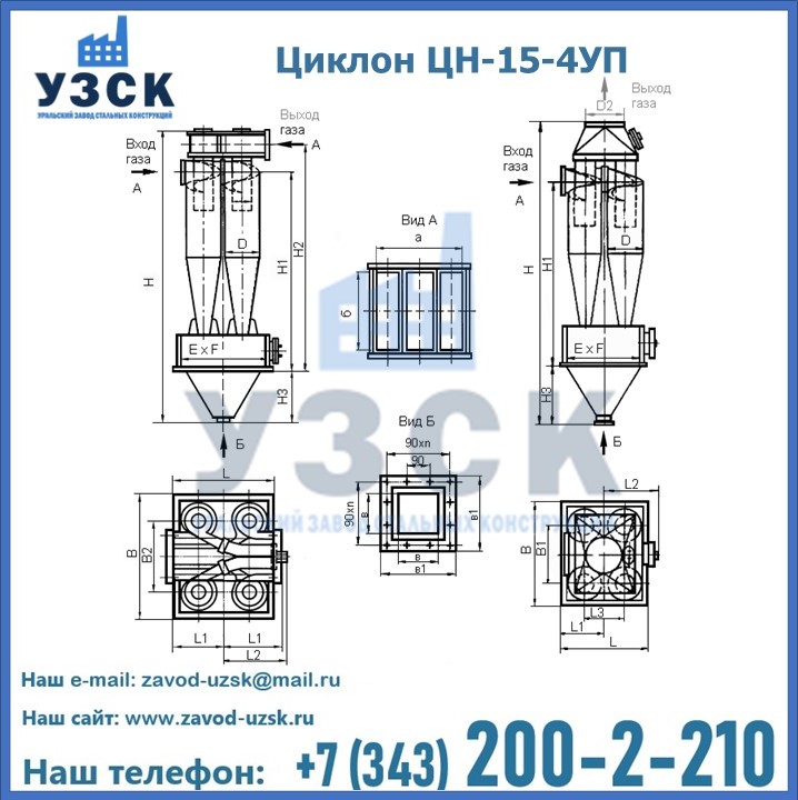 Завод «УЗСК» в Кемерово предлагает большой выбор циклонов ЦН-15-900×4УП и прочих устройств, полностью укомплектованных и готовых к эксплуатации. Мы гарантируем соответствие оборудования всем требованиям ГОСТ и ТУ, износостойкость и высокую производительность предлагаемого оборудования. Уральский Завод Стальных Конструкций изготавливает и продает надежное, эффективное и производительное оборудование, имеющее длительную гарантию и большой эксплуатационный ресурс. Если требуется изготовить циклон нестандартных размеров, то такой вариант выполнения заказа тоже предусмотрен, так как предприятие имеет собственные производственные площади и надежных поставщиков. На все поставляемое или производимое оборудование имеются чертежи и прочая техническая документация. Заказать и купить циклоны или прочее оборудование высокого качества и по доступной цене можно через наш сайт или по указанному в разделе «Контакты» телефону.