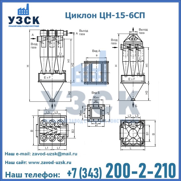 Завод «УЗСК» в Кемерово предлагает большой выбор циклонов ЦН-15-900×6СП и прочих устройств, полностью укомплектованных и готовых к эксплуатации. Мы гарантируем соответствие оборудования всем требованиям ГОСТ и ТУ, износостойкость и высокую производительность предлагаемого оборудования. Уральский Завод Стальных Конструкций изготавливает и продает надежное, эффективное и производительное оборудование, имеющее длительную гарантию и большой эксплуатационный ресурс. Если требуется изготовить циклон нестандартных размеров, то такой вариант выполнения заказа тоже предусмотрен, так как предприятие имеет собственные производственные площади и надежных поставщиков. На все поставляемое или производимое оборудование имеются чертежи и прочая техническая документация. Заказать и купить циклоны или прочее оборудование высокого качества и по доступной цене можно через наш сайт или по указанному в разделе «Контакты» телефону.