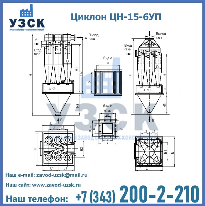 Завод «УЗСК» в Кемерово предлагает большой выбор циклонов ЦН-15-900×6УП и прочих устройств, полностью укомплектованных и готовых к эксплуатации. Мы гарантируем соответствие оборудования всем требованиям ГОСТ и ТУ, износостойкость и высокую производительность предлагаемого оборудования. Уральский Завод Стальных Конструкций изготавливает и продает надежное, эффективное и производительное оборудование, имеющее длительную гарантию и большой эксплуатационный ресурс. Если требуется изготовить циклон нестандартных размеров, то такой вариант выполнения заказа тоже предусмотрен, так как предприятие имеет собственные производственные площади и надежных поставщиков. На все поставляемое или производимое оборудование имеются чертежи и прочая техническая документация. Заказать и купить циклоны или прочее оборудование высокого качества и по доступной цене можно через наш сайт или по указанному в разделе «Контакты» телефону.