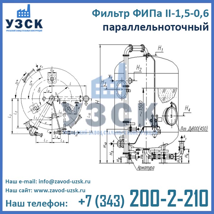 Цены фильтра ФИПа 2 ступени 1,5-0,6 формируются в соответствии со множеством факторов, таких как материальное исполнение, тип распределительных устройств, требуемая комплектация, необходимости доставки и т.д. Для расчета цены фильтров ФИПаII-1,5-0,6 в Кемерово обратитесь в отдел продаж Уральского Завода Стальных Конструкций по координатам, указанным в разделе «Контакты».