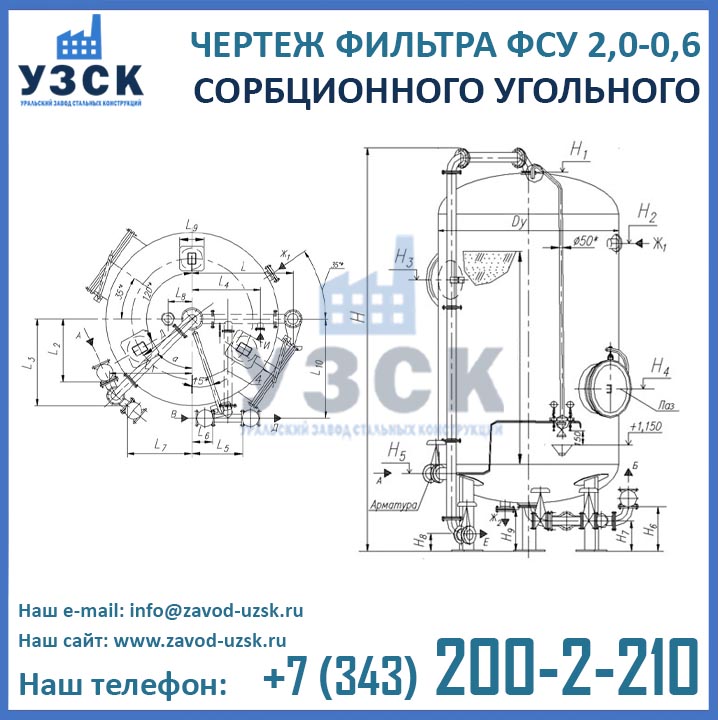 Стоимость фильтра ФСУ 2.0-0.6 рассчитывается в индивидуальном порядке в зависимости от комплектации, необходимости доставки в Ваш регион, загруженности производства, а также текущих цен на сырье. Для того чтобы уточнить актуальные цены на фильтры ФСУ-2.0-0.6, обратитесь к менеджерам отдела продаж Уральского завода стальных конструкций, являющегося производителем сорбционных угольных фильтров. Координаты для связи Вы можете найти в разделе «Контакты» на нашем сайте. Также для Вашего удобства внизу страницы размещена форма онлайн заказа, с помощью которой Вы можете с легкостью связаться с нашими специалистами.