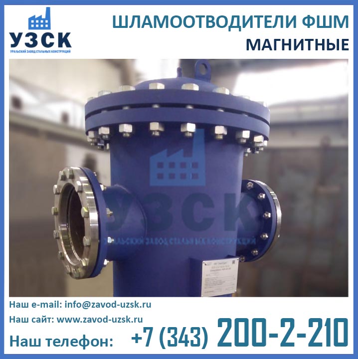 Уральский завод стальных конструкций – непосредственный производитель фильтров ФШМ, предлагающий самые низкие цены на шламоотводители ФШМ Ду 800 мм в Кемерово и других городах России, Армении, Казахстана, Белоруссии и Киргизии.
